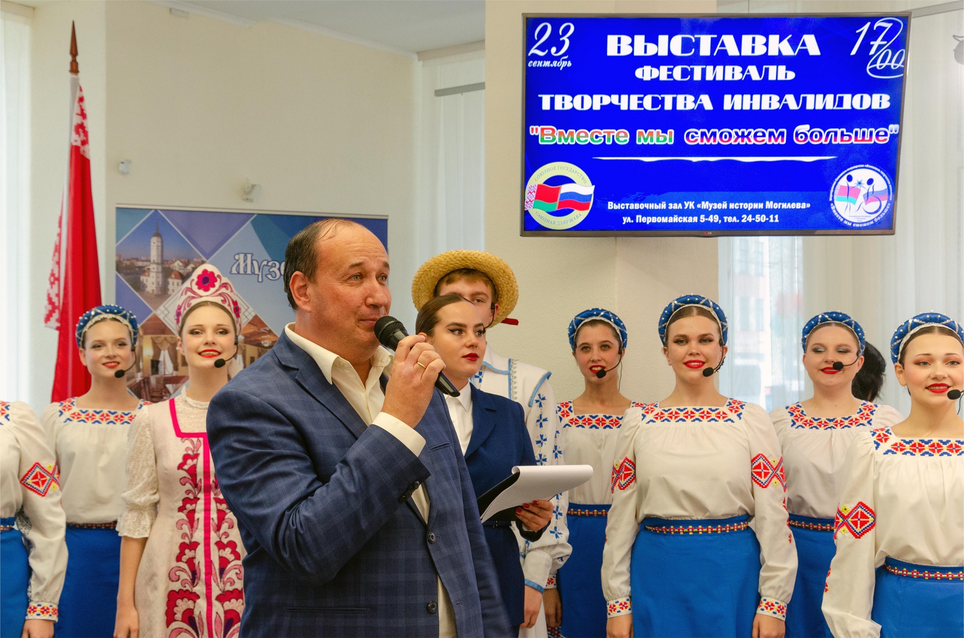 Состоялась торжественная церемония открытия уникальной выставки фестиваля творчества инвалидов “Вместе мы сможем больше”. Данный проект является мероприятием Союзного государства, что подчёркивает его важность и масштаб. В выставочной экспозиции представлено более 100 работ изобразительного и декоративно-прикладного искусства: картины и вышивки, игрушки и изделия из бисера, украшения, разнообразные вязаные изделия и многое другое, каждый  старался привезти свои лучшие работы, в результате, выставка получилась яркой и разнообразной.  В Могилев на праздник творчества съехались около 300 участников из разных регионов Беларуси и России. Фестиваль продлится с 23 по 26 сентября.            …